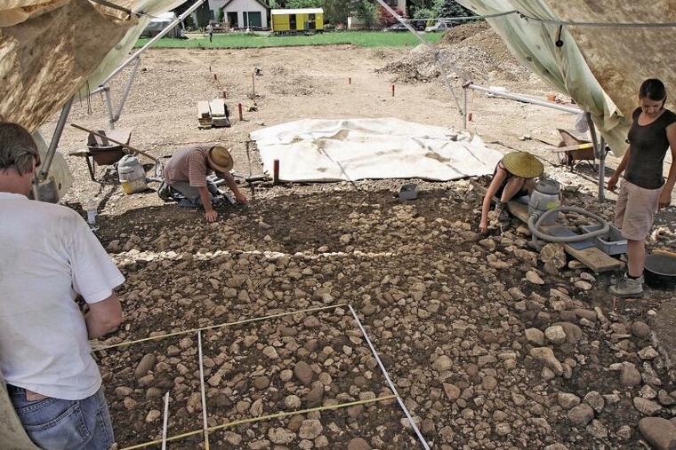 Erstaunlich viele Leute hatten sich trotz der Hitze im Konzertsaal des Schulhauses Kirsgarten eingefunden. Bevor Frau Landammann Sandra Kolly ein Grusswort der Regierung überbrachte, spielte ein Quintett der Brassband Konkordia Büsserach das Stück «Jupiter» aus den «Planeten» von Gustav Holst. Nach einem weiteren musikalischen Intermezzo ergriff Kantonsarchäologe Pierre Harb das Wort. Er gab einen allgemeinen, ersten Überblick über die Ausgrabungen in Büsserach. Die Fundstelle an der Mittelstrasse wurde erst 2008 entdeckt. Man fand vor allem Holzkohle und 4,7 Tonnen Schlacke. All das wies darauf hin, dass es hier auf einer Fläche von 3000 Quadratmetern eine intensive Eisenverhüttung gegeben hatte, d. h. ein veritables frühmittelalterliches Eisengewerbeviertel, in dem auch Fachleute in der Textil- und Lederverarbeitung arbeiteten. Insgesamt 17 Personen beteiligten sich 2010 und 2011 an den Ausgrabungen.